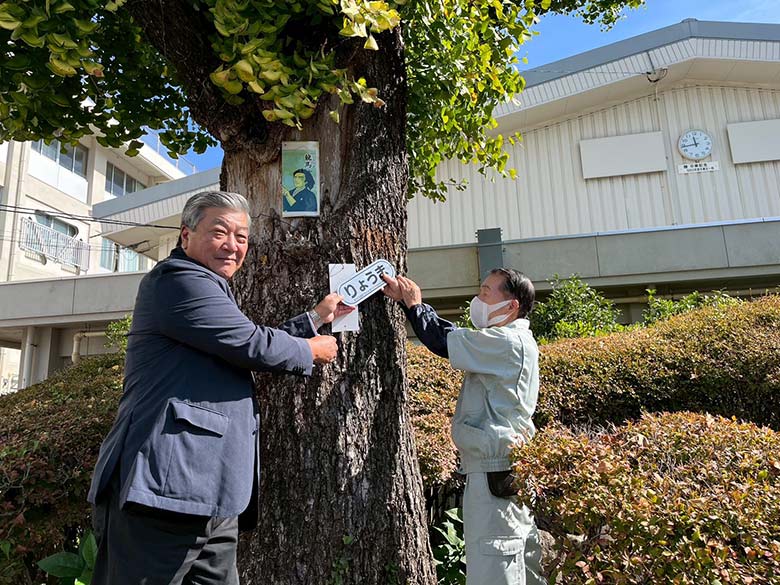 そして先日、この歴史ある小学校の校庭に立つ、勇ましい「りょうま」の木に、特別なプレートが取り付けられました。その名も『りょうまプレート』。